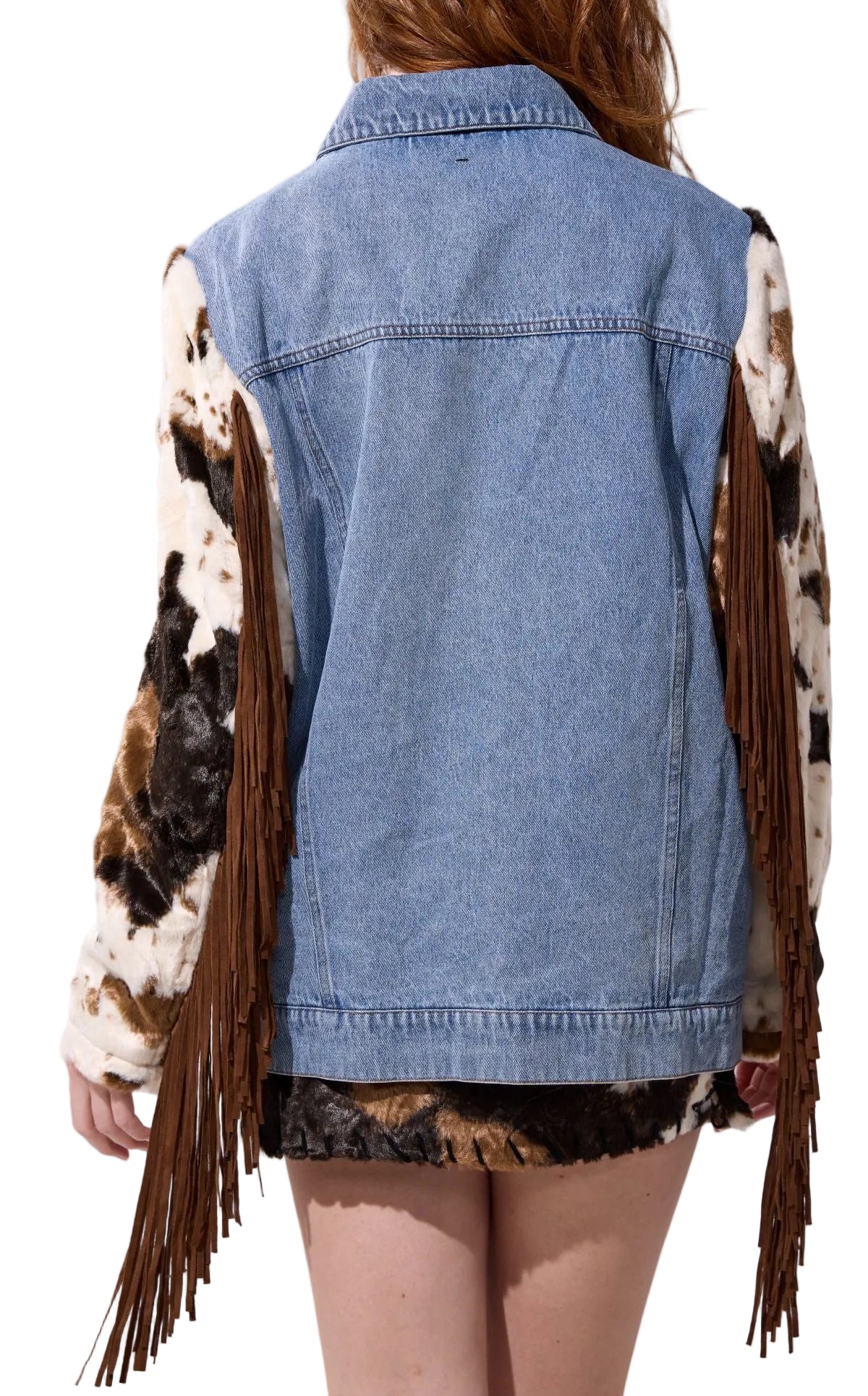Description For when you can't decide. Go casual with a denim jacket and bold it up with cow-print sleeves and... Read more