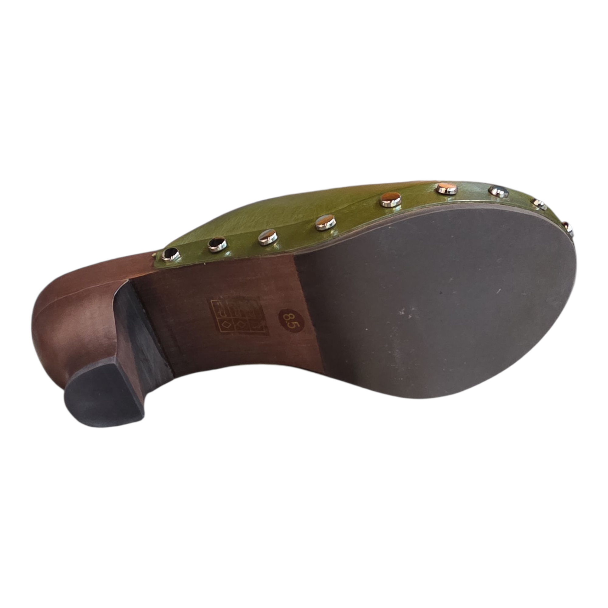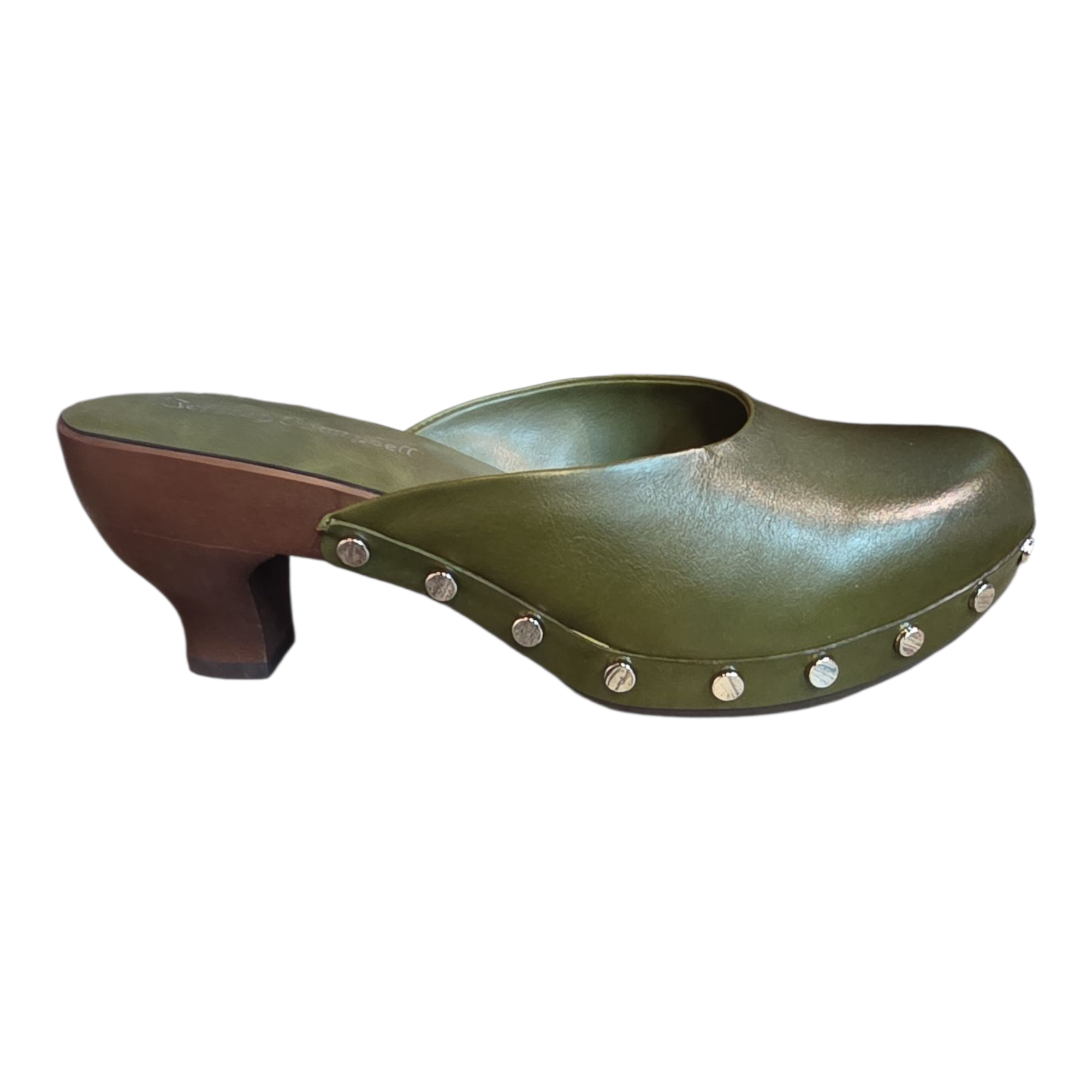 JEFFREY CAMPBELL CLOGUETTE WOMEN MULES Olive Distressed