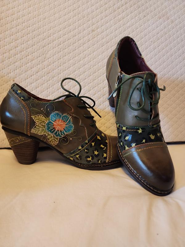 Unleash your bold and artistic side with this striking baroque-inspired lace-up oxford. Crafted from a premium leather upper, this shoe is a true masterpiece, featuring intricate floral embossing, leopard print accents, and contrast stitching for a daring yet sophisticated look. The stacked mid-heel provides just the right amount of lift while ensuring stability and comfort. A cushioned insole keeps you feeling great all day, making this shoe perfect for work, casual outings, or nights out. Elevate your wardrobe