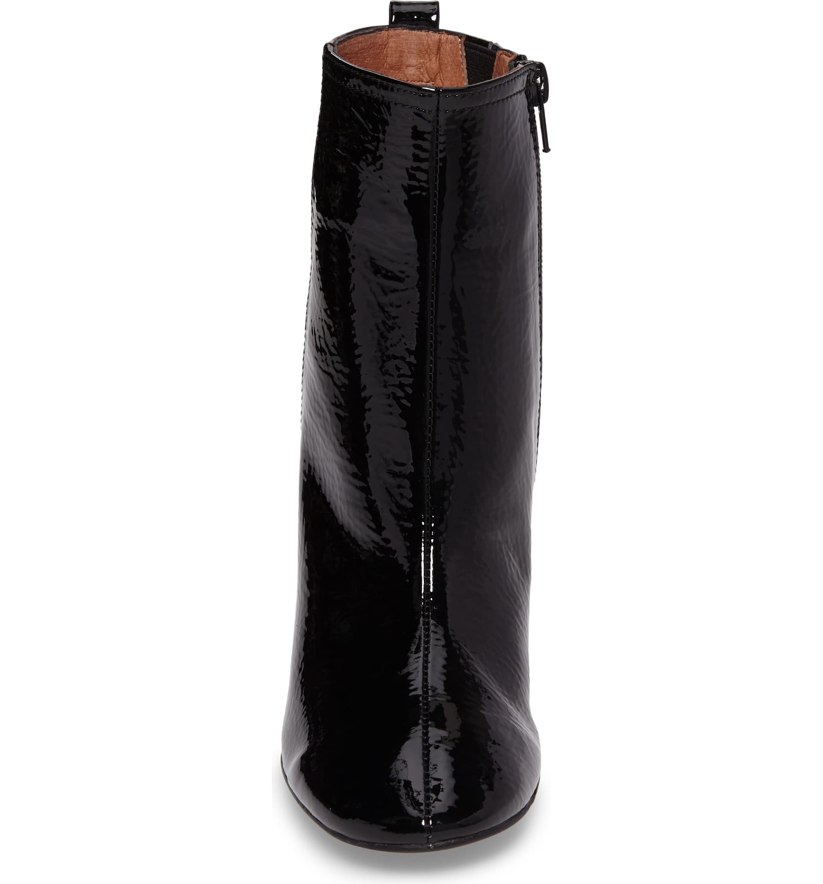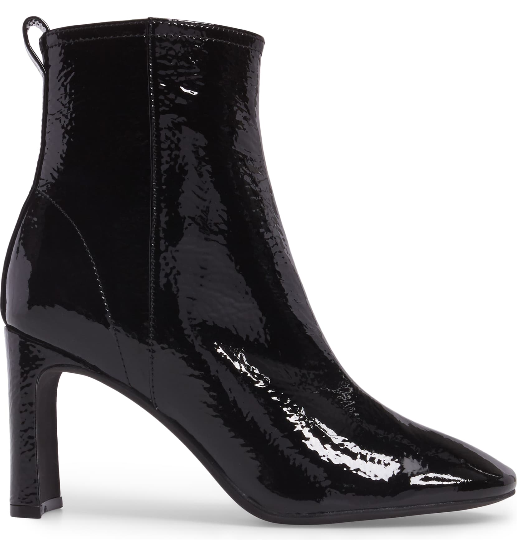 DETAILS & CARE A thin, curvy heel adds lift and interest to a minimalist leather bootie styled for simplicity... Read more