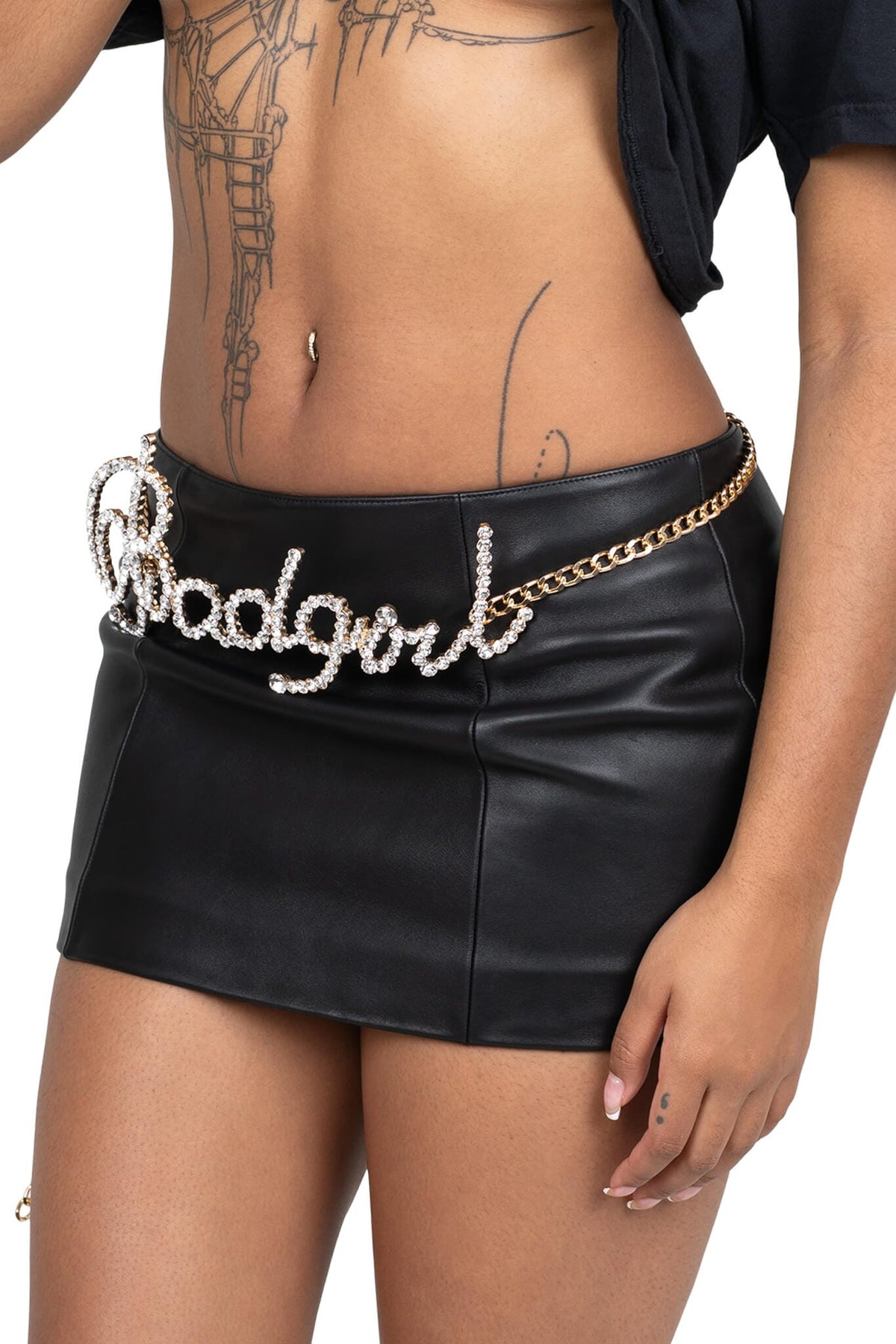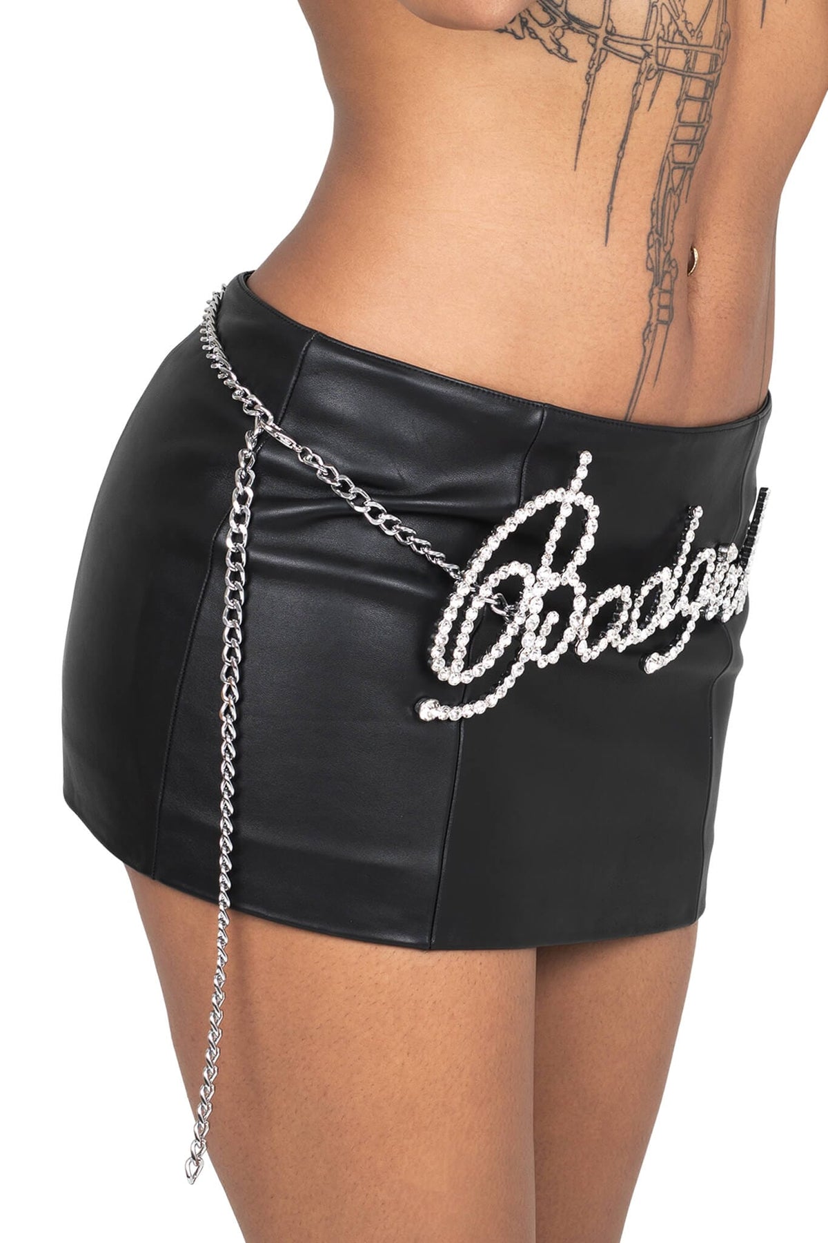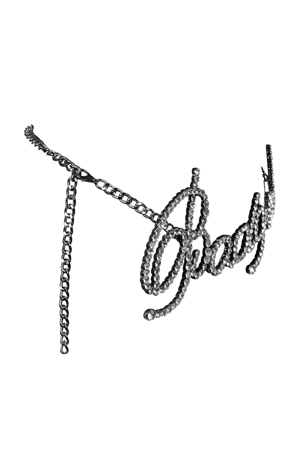 Embellished chain belt Made of metal material 45" Length Clasp closure Read more