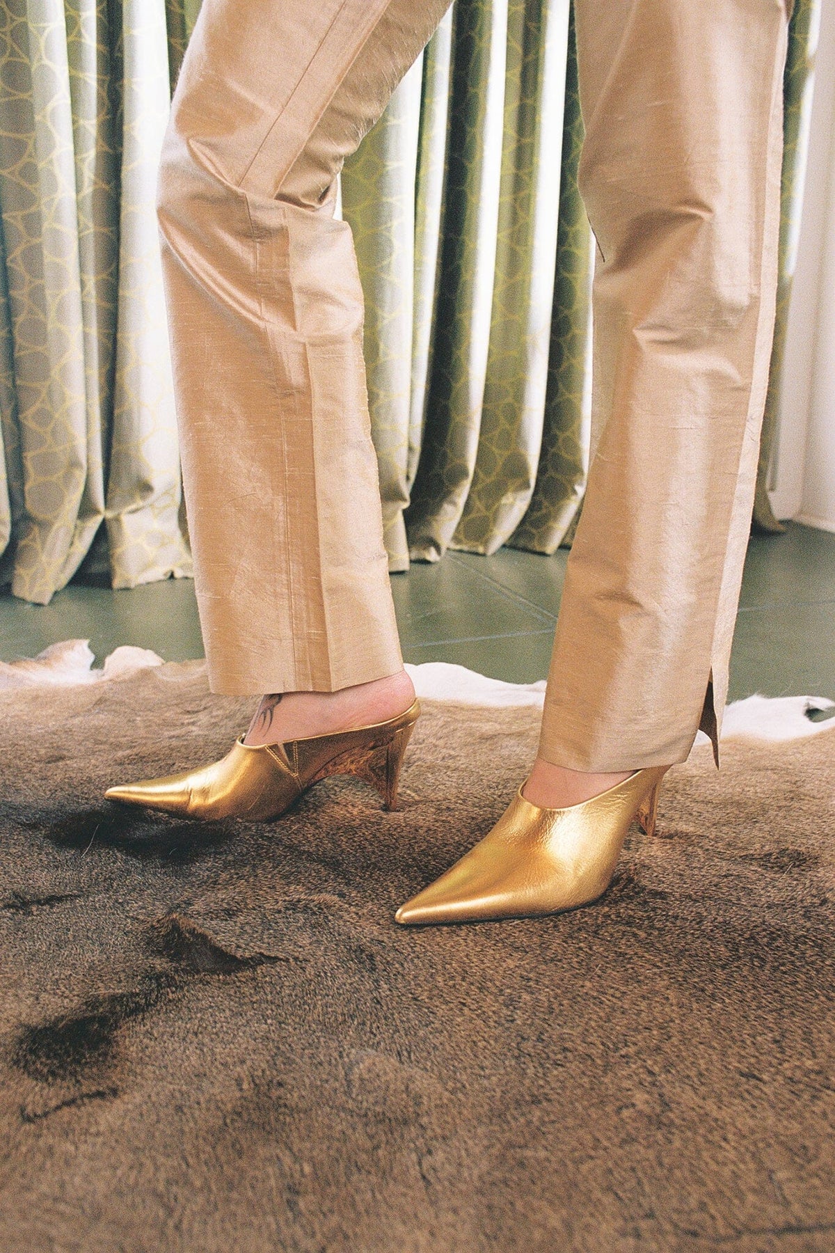 Pointed-toe mule with sculpted heel and high-vamp Fits true to size Measurements taken from a size 7 3.5" Heel, 0.25"... Read more