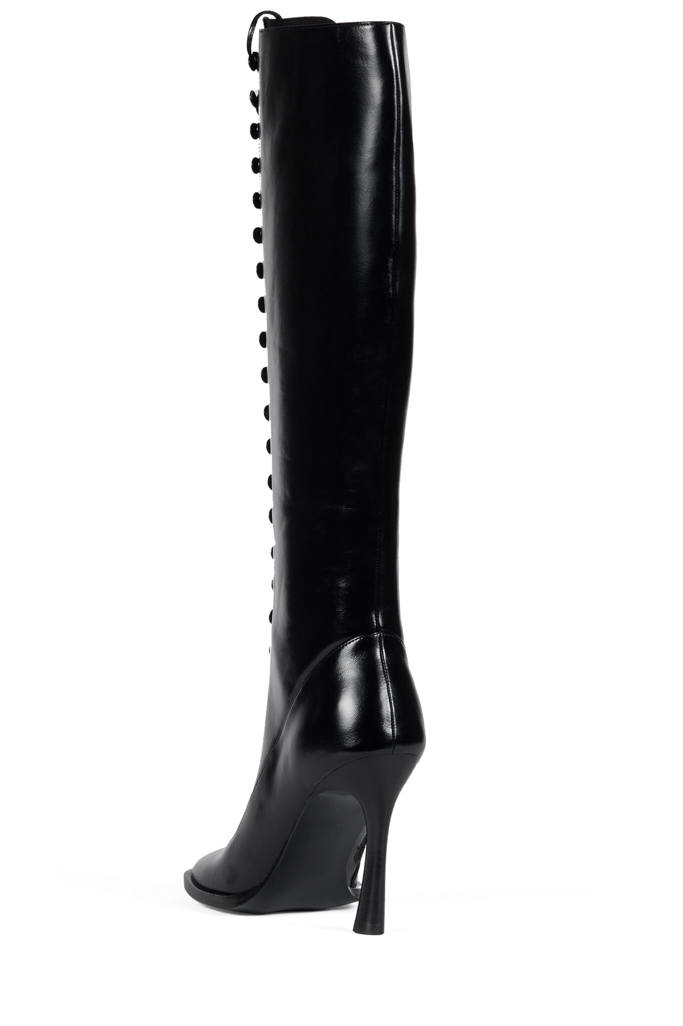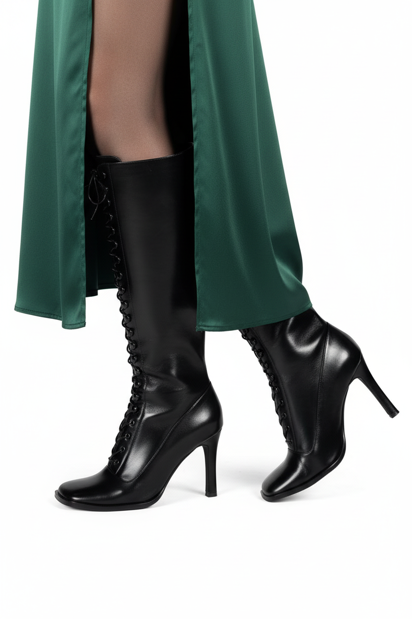 Lace-up heeled knee-high boot Fits true to size Measurements taken from size 6 3.65" Heel, 0.25" Platform 14.5" Shaft, 14"... Read more