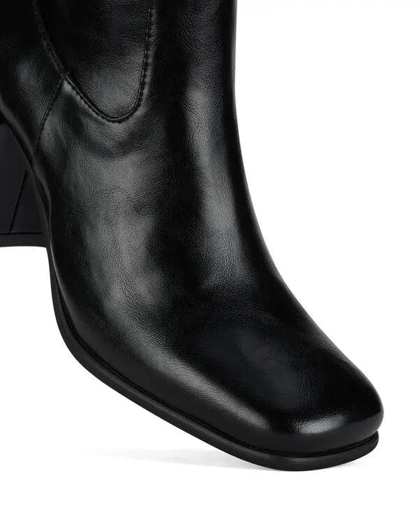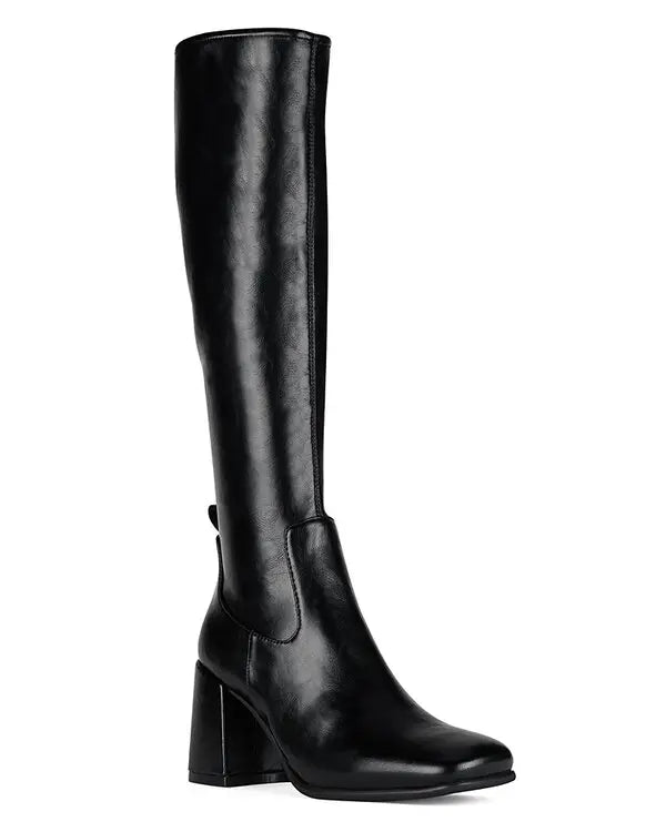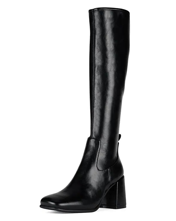 Knee-high heeled stretch boot Fits true to size Measurements taken from a size 7 3" heel, 0.25" platform 15.5" Shaft,... Read more
