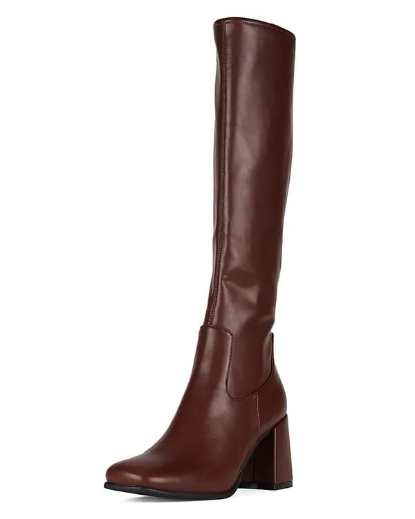 Knee-high heeled stretch boot Fits true to size Measurements taken from a size 7 3" heel, 0.25" platform 15.5" Shaft,... Read more