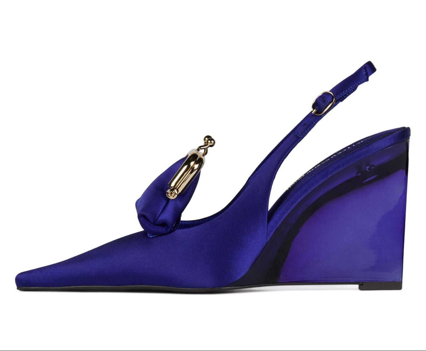 Slingback pump with attached functional coin purse and lucite wedge Fits true to size Measurements taken from size 6 3.75"... Read more