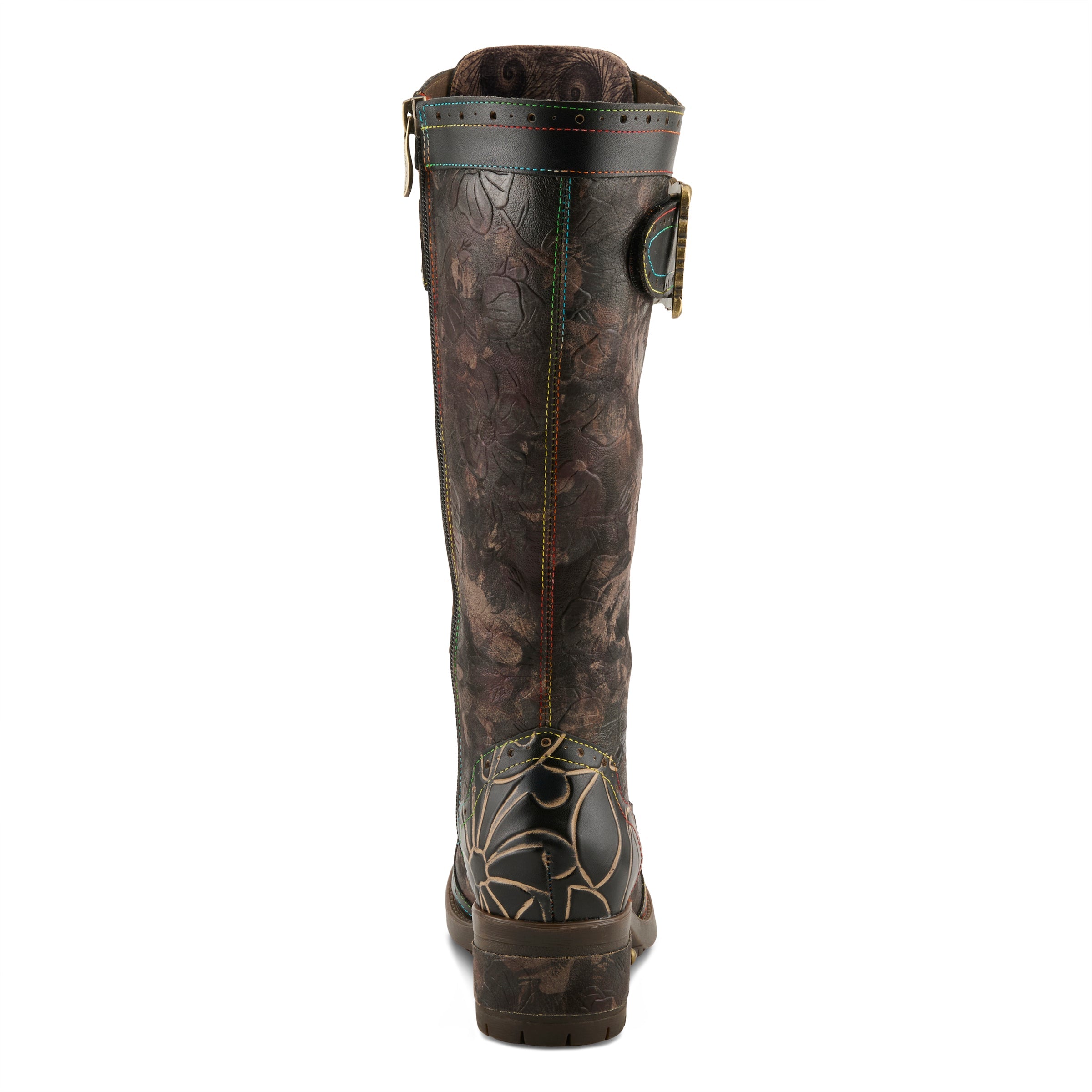 Command attention with this vintage-inspired masterpiece—a boot that fuses artistry with modern sophistication. Crafted with an unique leather combo upper, this knee-high stunner boasts an intricate floral design that evokes vintage elegance. A striking lace-up front is accented with an ornate side buckle, offering an exquisite balance of structure and femininity. The signature rainbow stitching and delicately etched heel lend an artisanal touch, elevating the boot to wearable art. Designed for comfort without compromising style, it features an inside zip for effortless wearability. This show-stopping piece is the epitome of rock and role vibes with everyday practicality.