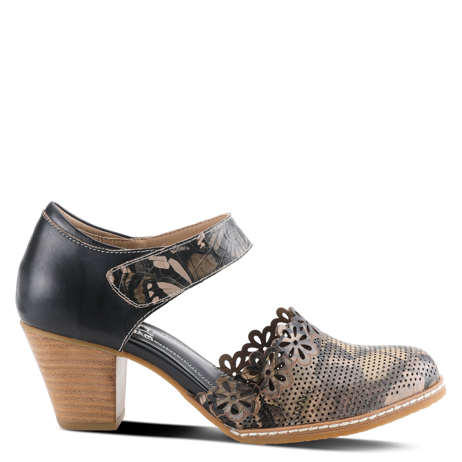 L`Artiste Style: SUNSET Lovely Mary Jane-inspired heel featuring a leather butterfly print with a solid heel, perforations, and flower laser... Read more