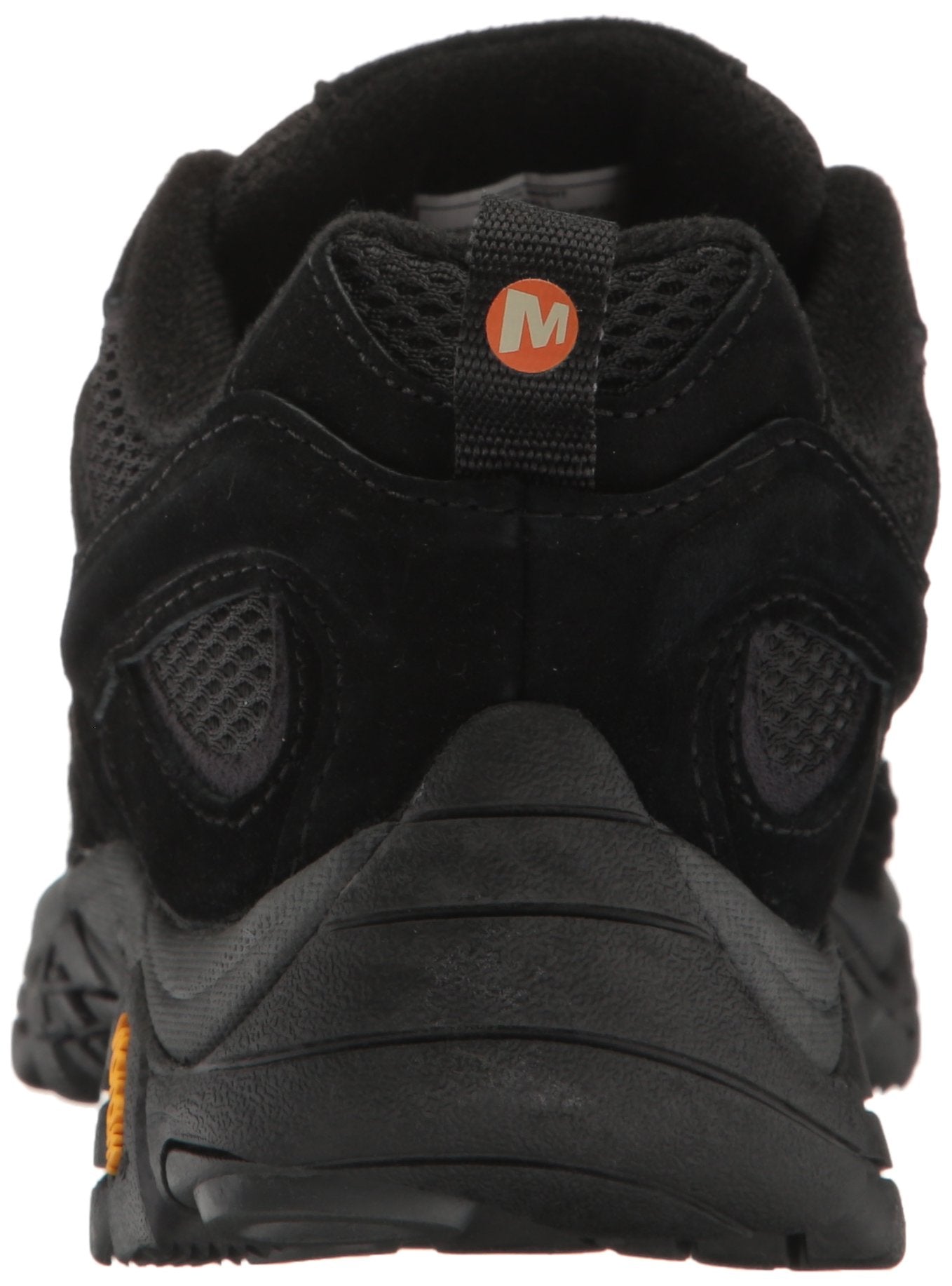 Experience out-of-the-box comfort in this ventilated hiker. With durable leathers, a supportive footbed, and Vibram traction, all in a versatile package, you won't doubt why Moab stands for Mother-Of-All-Boots._ • Performance suede leather and mesh upper • Bellows, closed-cell foam tongue keeps moisture and debris out • Protective rubber toe cap • Breathable mesh lining • Merrell M Select FIT.ECO+ blended EVA contoured footbed with added zonal arch and heel support • Molded nylon arch shank • Merrell air cushion in the heel absorbs shock and adds stability • EVA midsole for stability and comfort • Vibram TC5+ sole • 5mm lug depth • Weight: 1lb 15oz / 888G