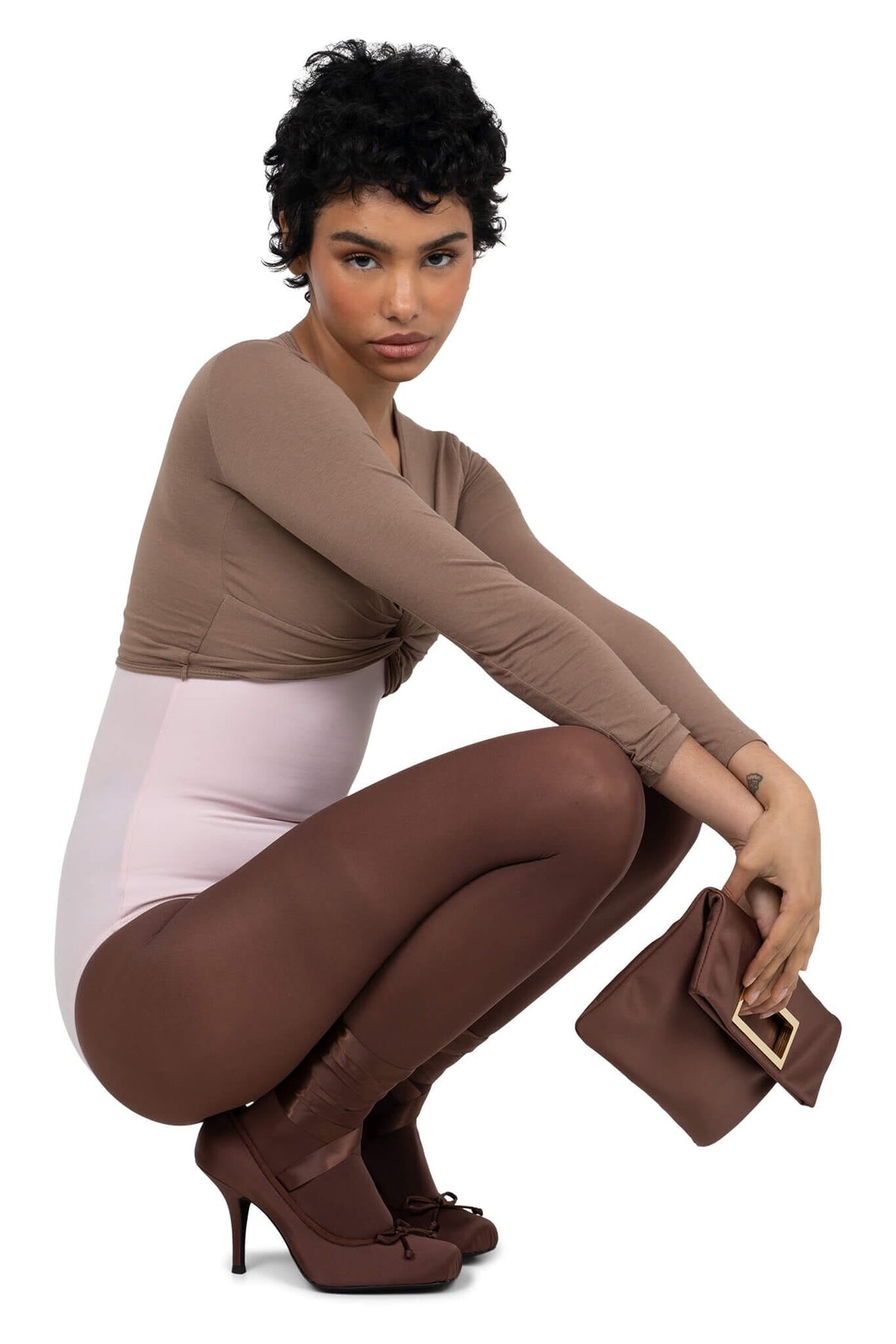 JEFFREY CAMPBELL NYMPHA WOMEN HEELS Brown Satin