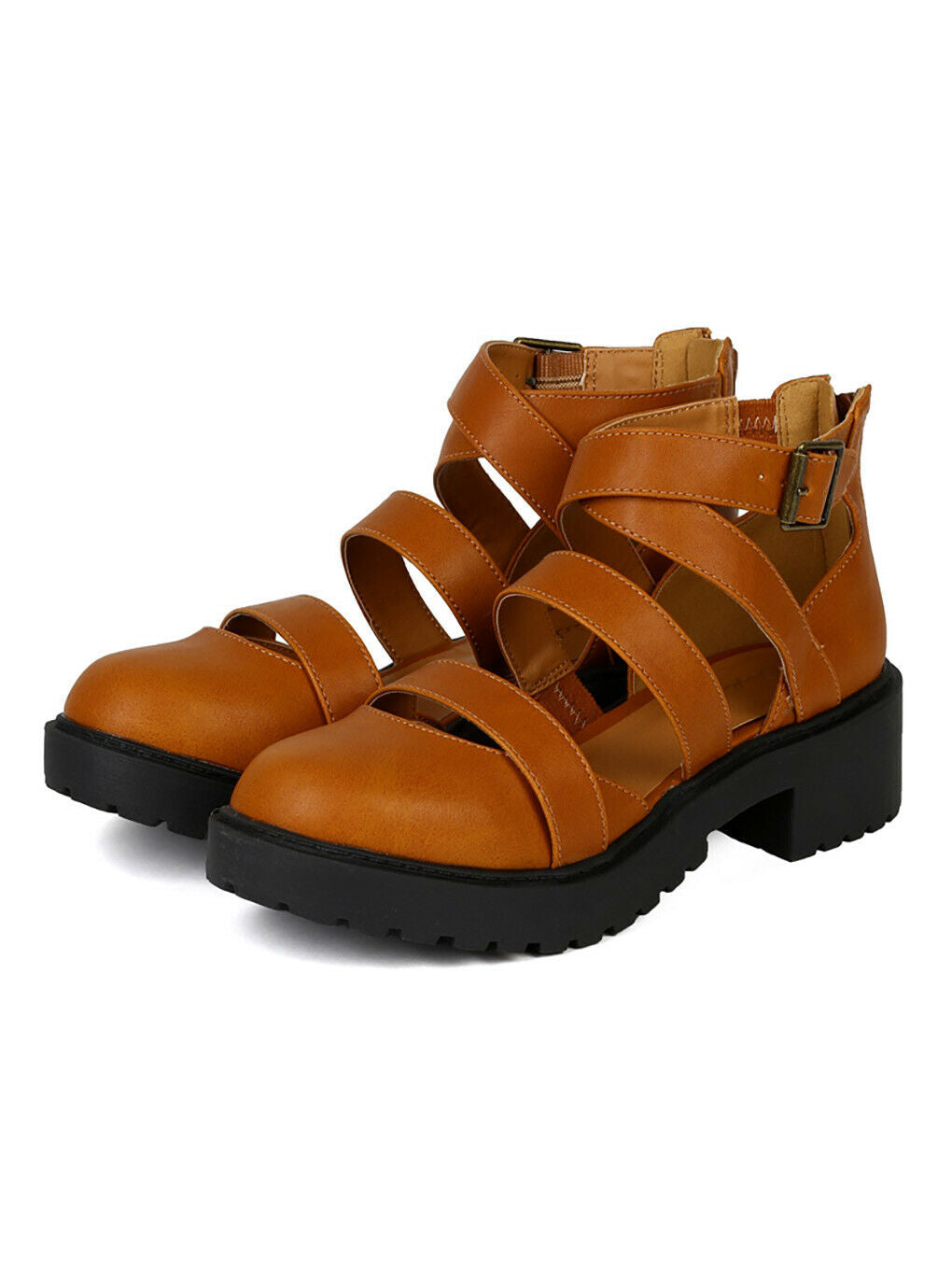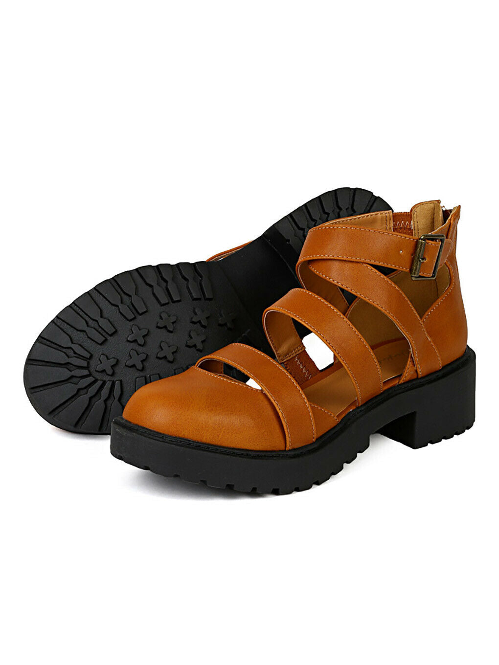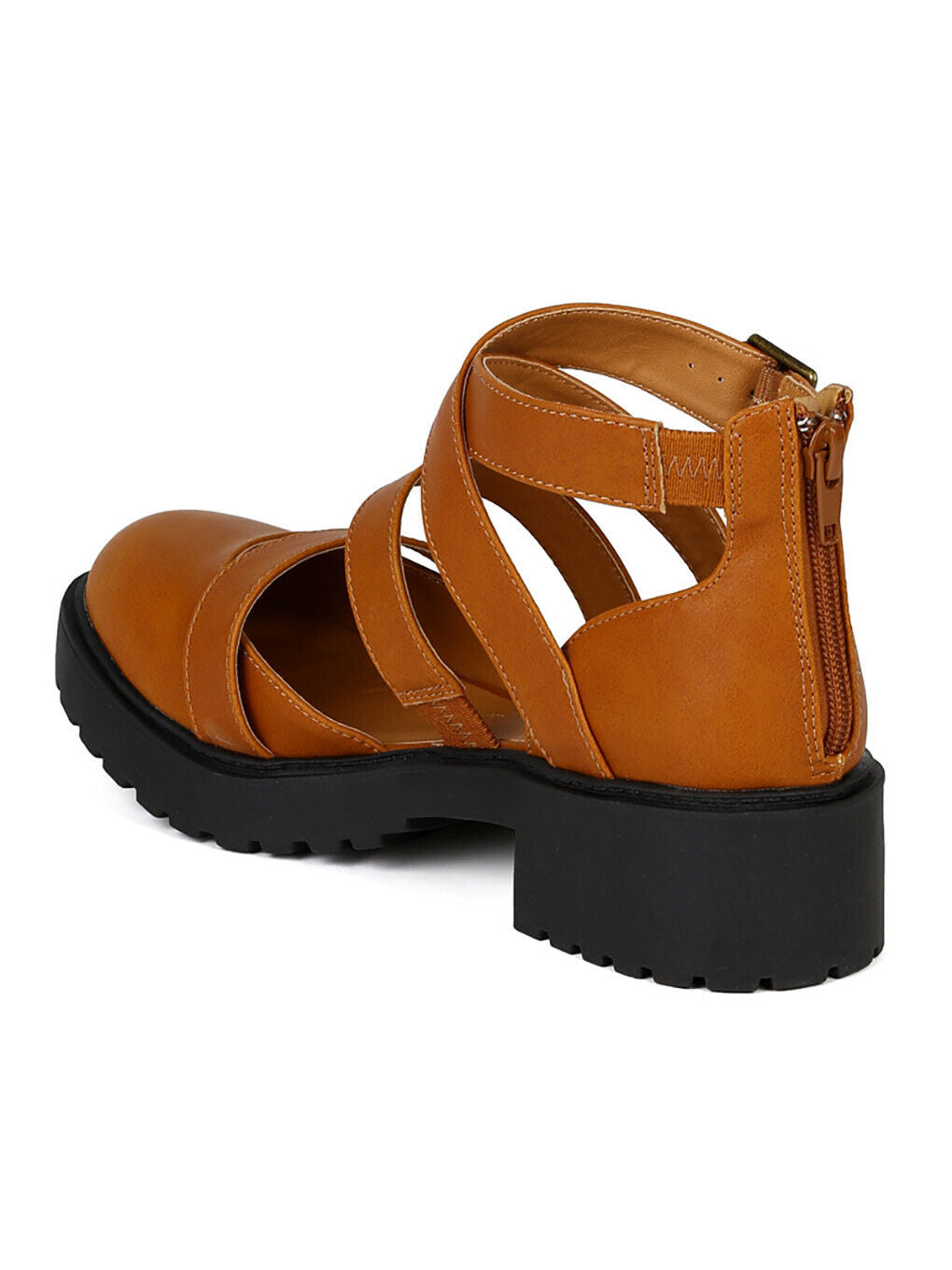Designed with leatherette upper, round toe, scooped vamp, strappy design with single adjustable buckle closure, side cutouts, stitching detail, and... Read more