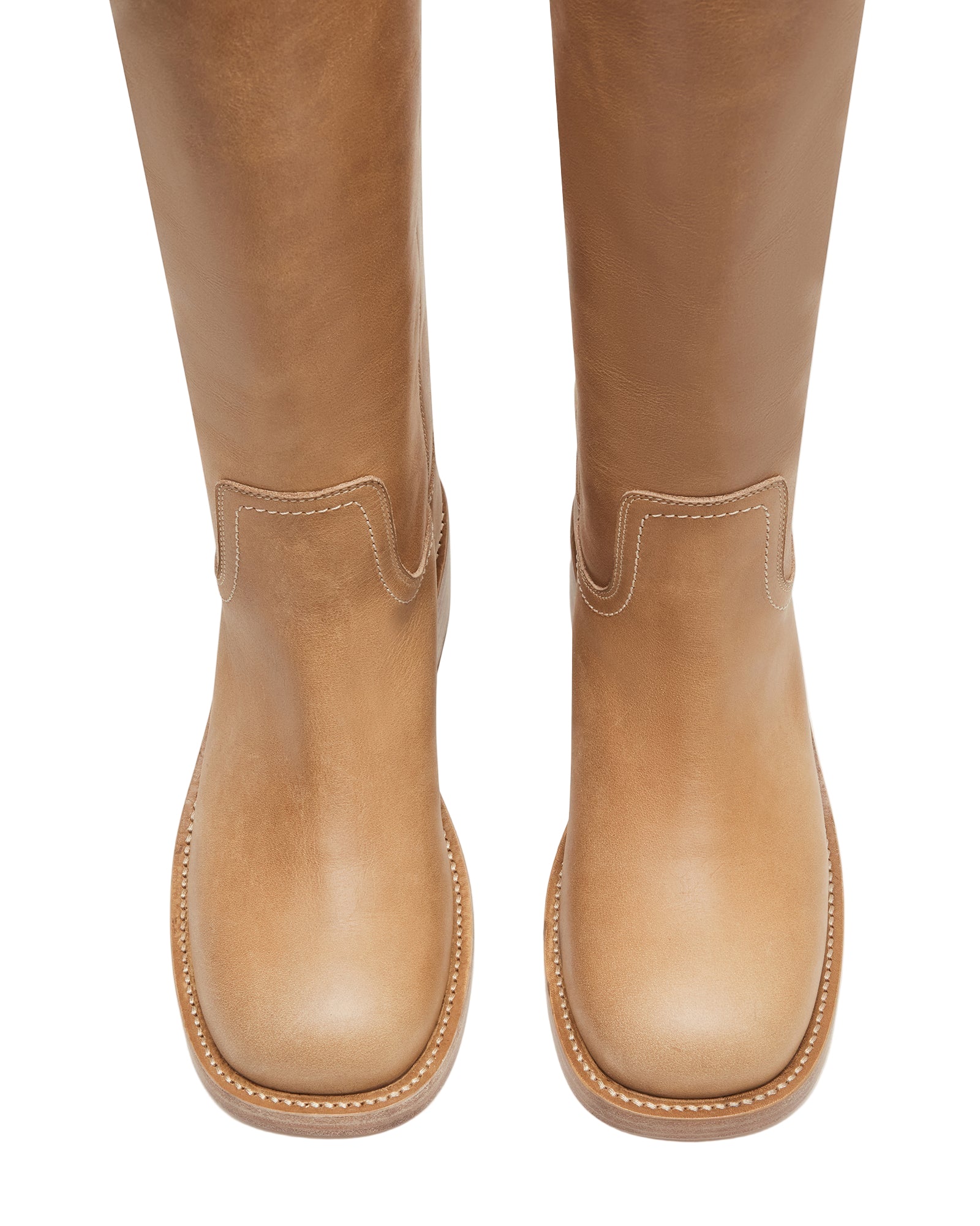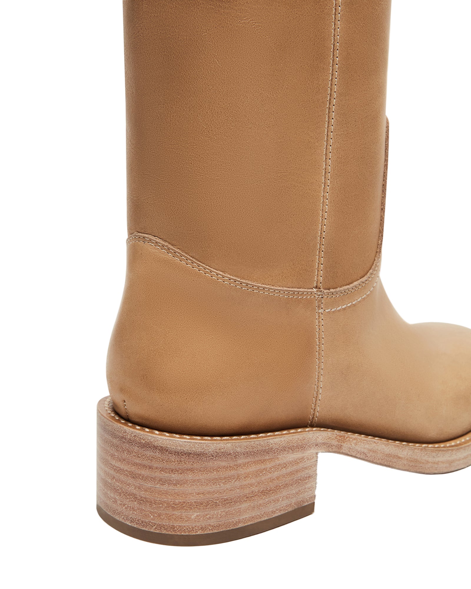 Details Effortlessly elevate your style with the RIGGS BANANA LEATHER boot. With its square-toe and sleek design, this just-under-the-knee boot is... Read more