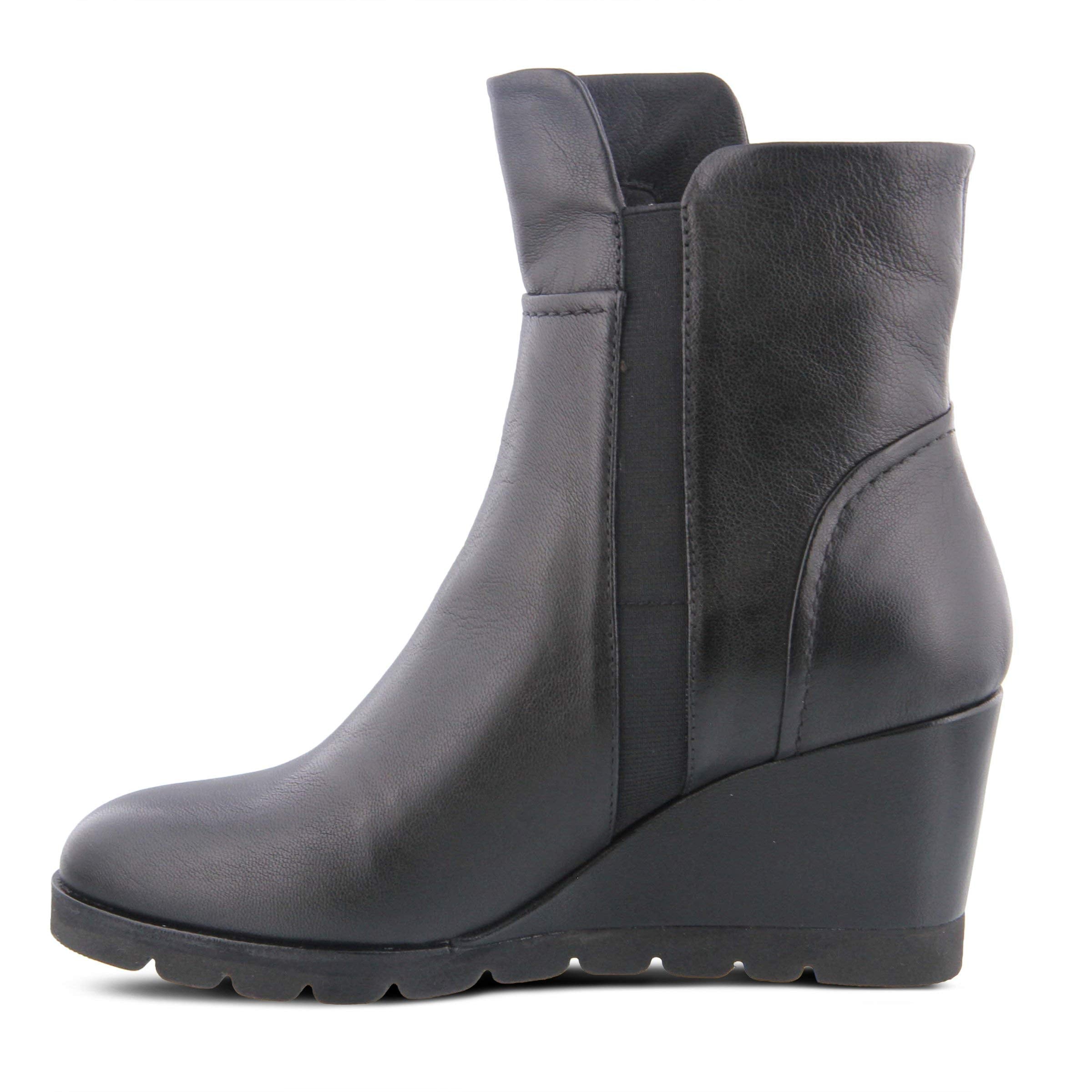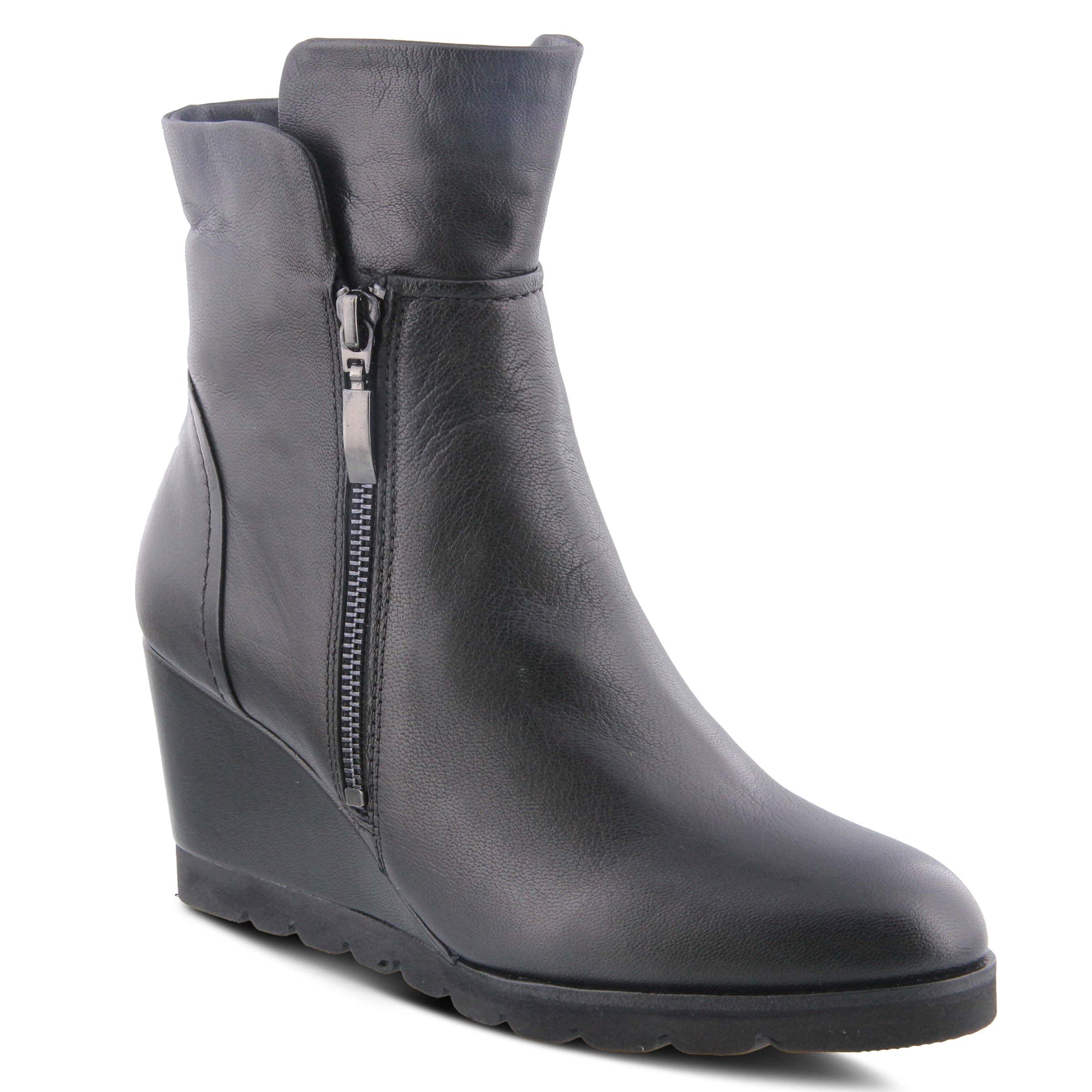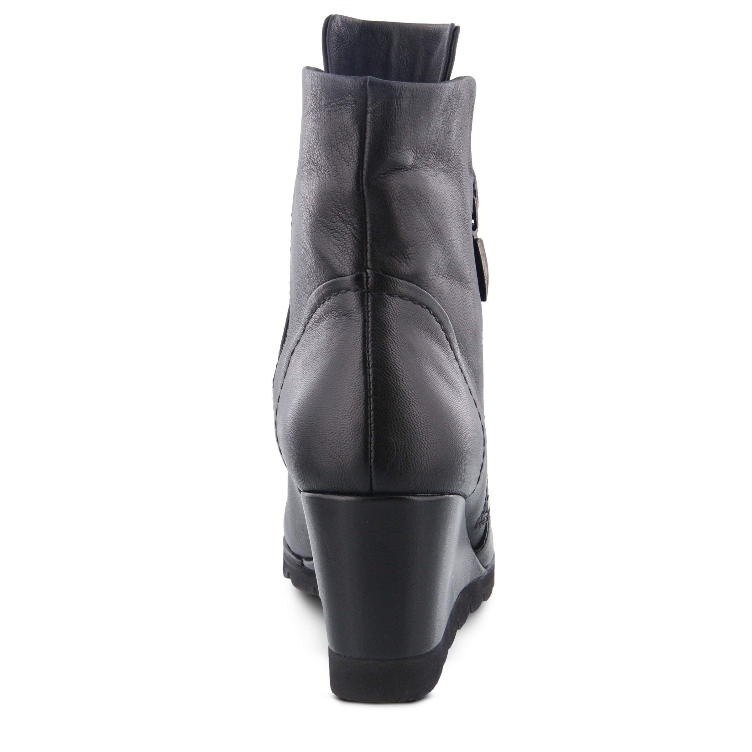 Spring Step Style: Anjelica Modern and fashionable polished leather wedge bootie featuring an incorporated stretch elastic and functional lateral zipper... Read more